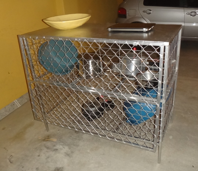 As alças que estariam de cada lado foram eliminadas, pois a escolha da grade para as laterais permitem o perfeito encaixe para as mãos ao se carregar objeto